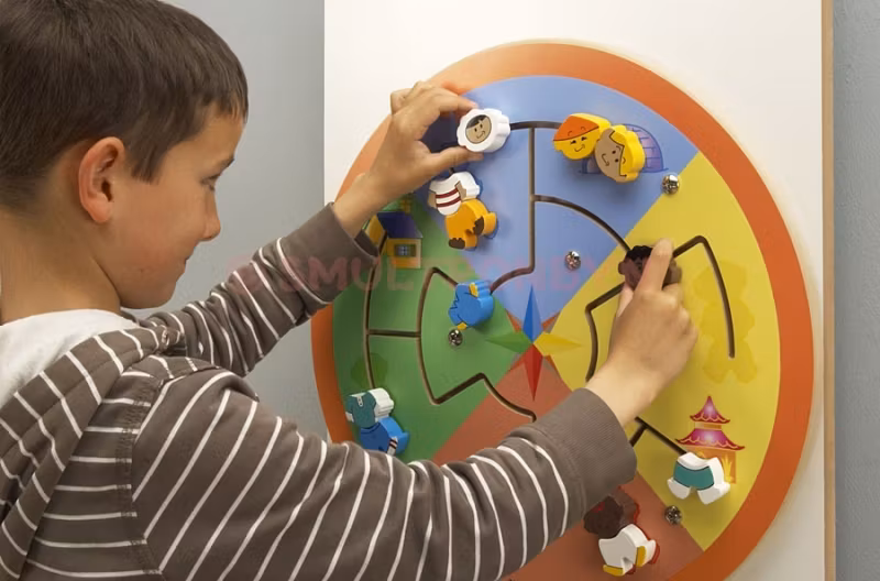 Kidea väggmonterad aktivitetspaneler är baserade på populära spel som Maze, Tetris, Connect 4, Snakes and ladders och olika varianter av pussel. De är lämpliga för offentlig miljö tack vare deras Anti Stöld konstruktion och lotteribollar som används i stället för tärningar.