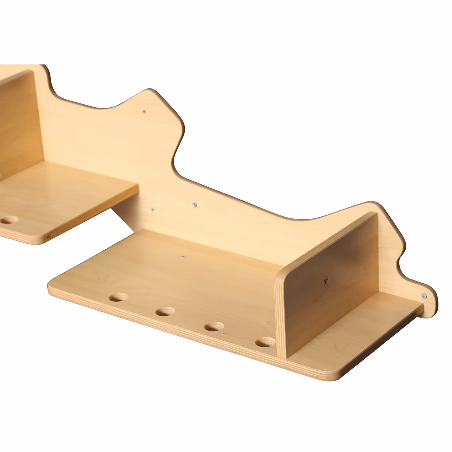 Hyllan har en generös bredd på 295 cm och en höjd på 195 cm. Den erbjuder tillräckligt med utrymme för en imponerande samling av böcker, tidskrifter, spel och annat utbildningsmaterial. I framkant på hyllorna finns borrade hål där snören och krokar kan fästas med dekorativa föremål, efter tema eller årstid. Kanske julgranshängen till jul, löv på hösten o.s.v.