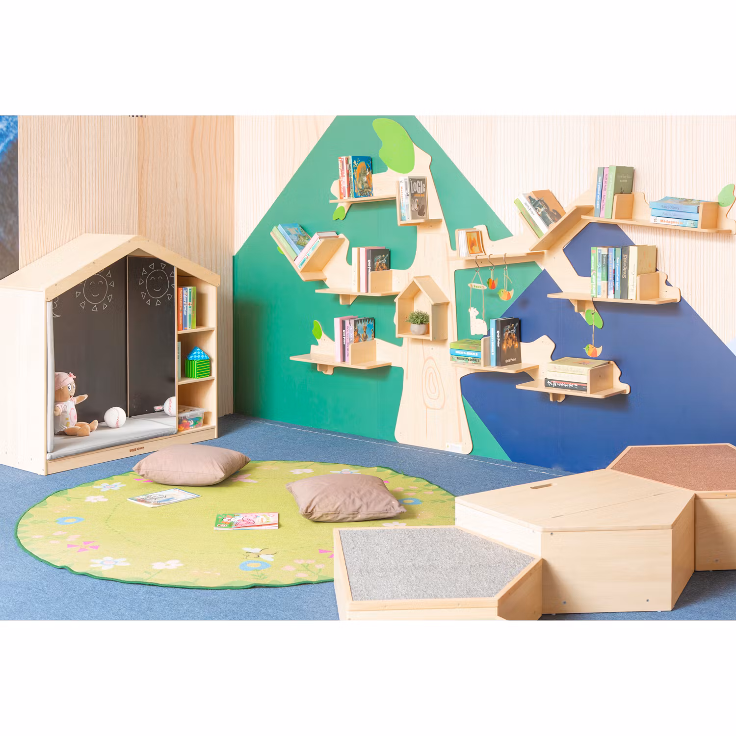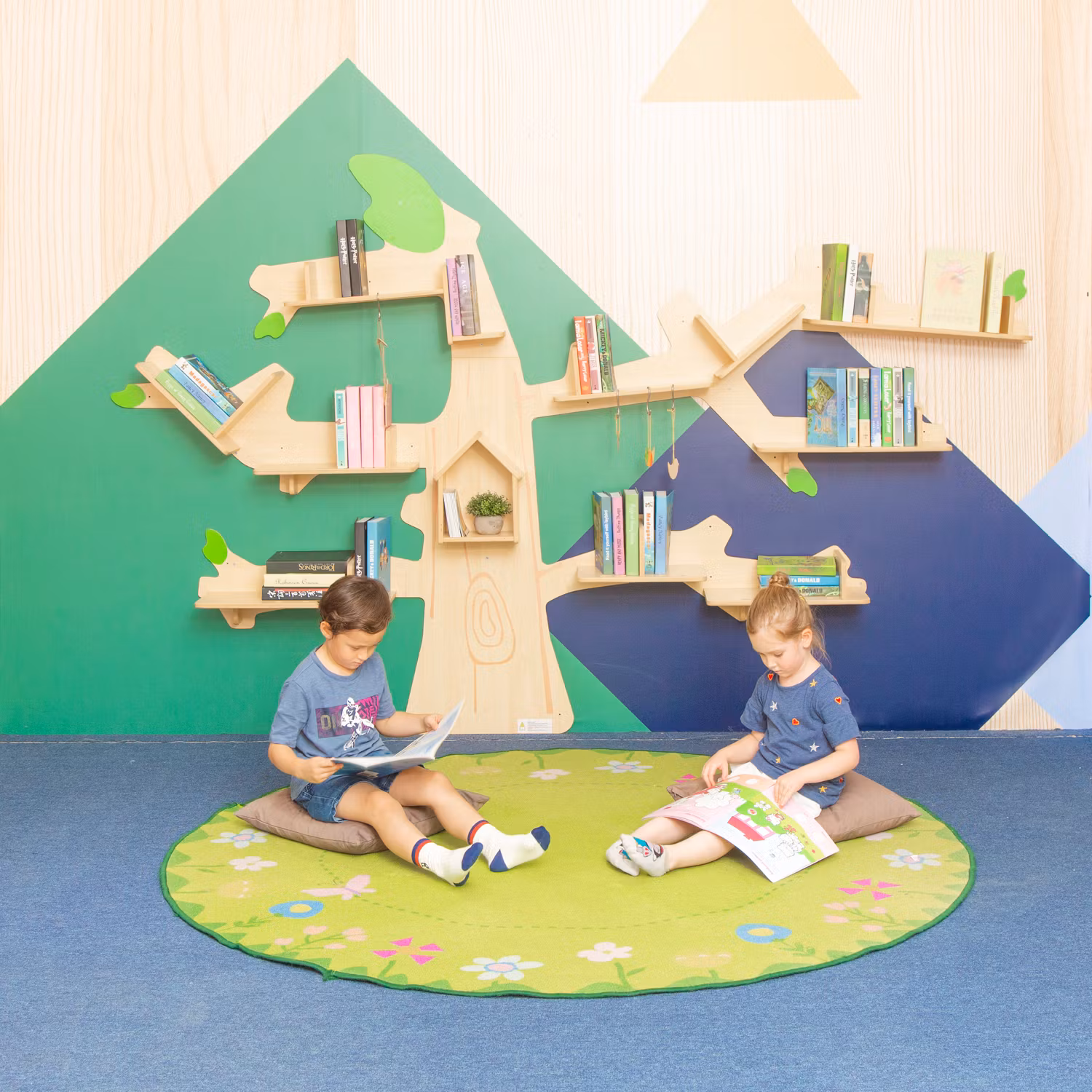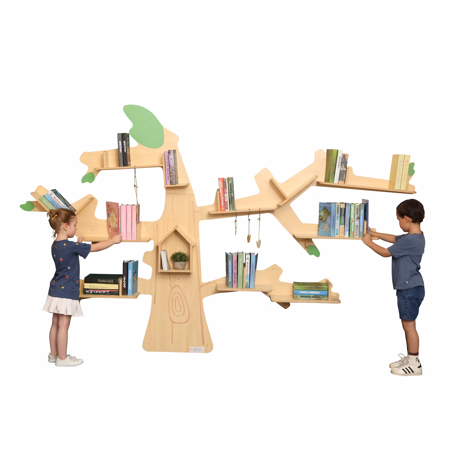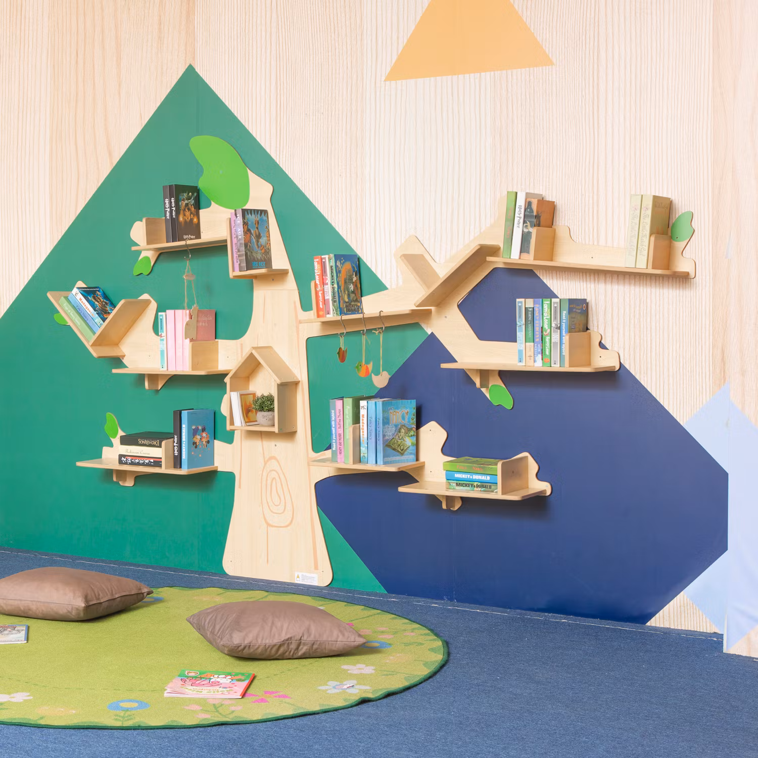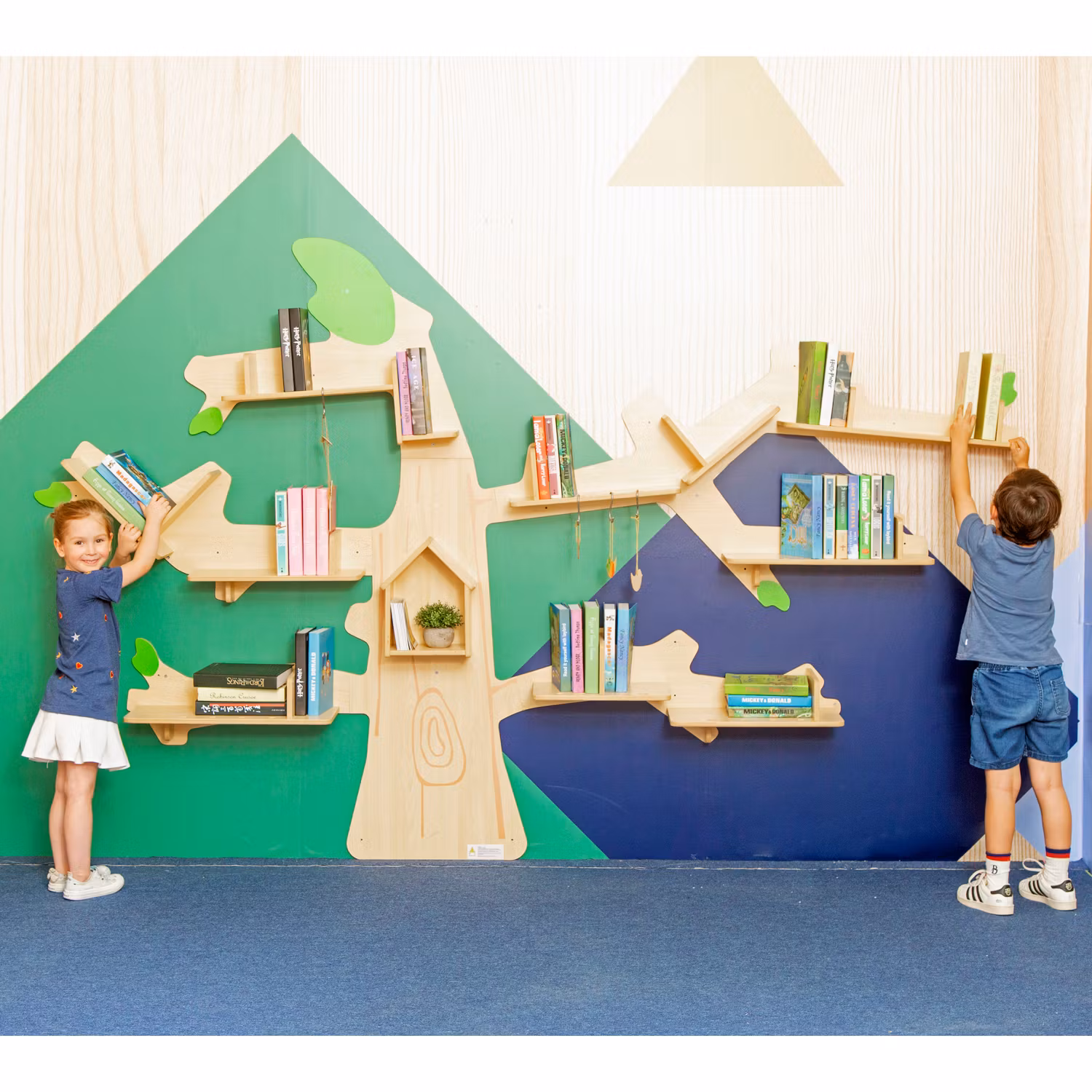 Bokhyllan Träd är en dekorativ och fantasifull bokhylla speciellt framtagen för bibliotek, förskolor och skolor. Den passar även utmärkt i ett väntrum.