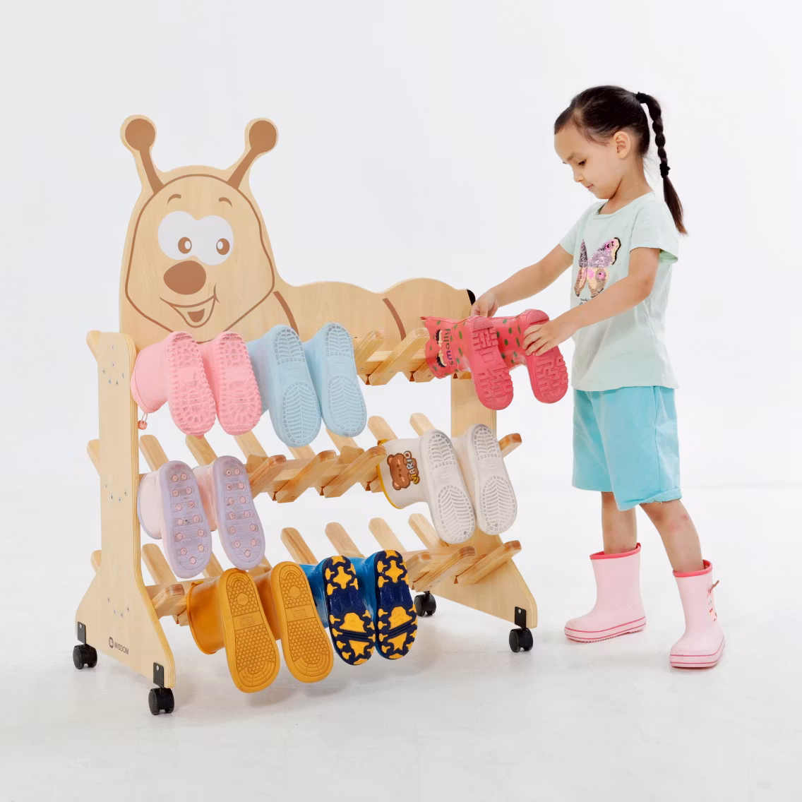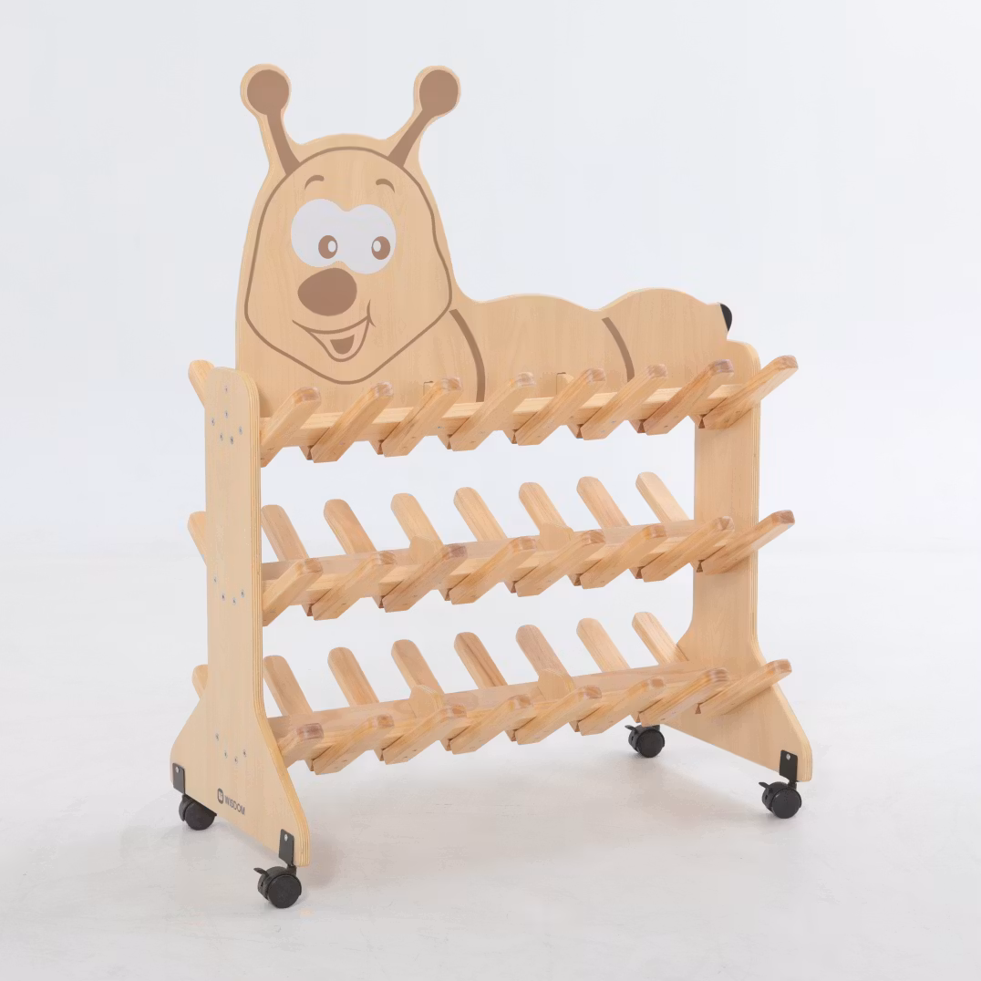Idealisk för entréområdet på förskola. Barnen tar gärna på sig stövlarna när de torkat på larvens fötter.