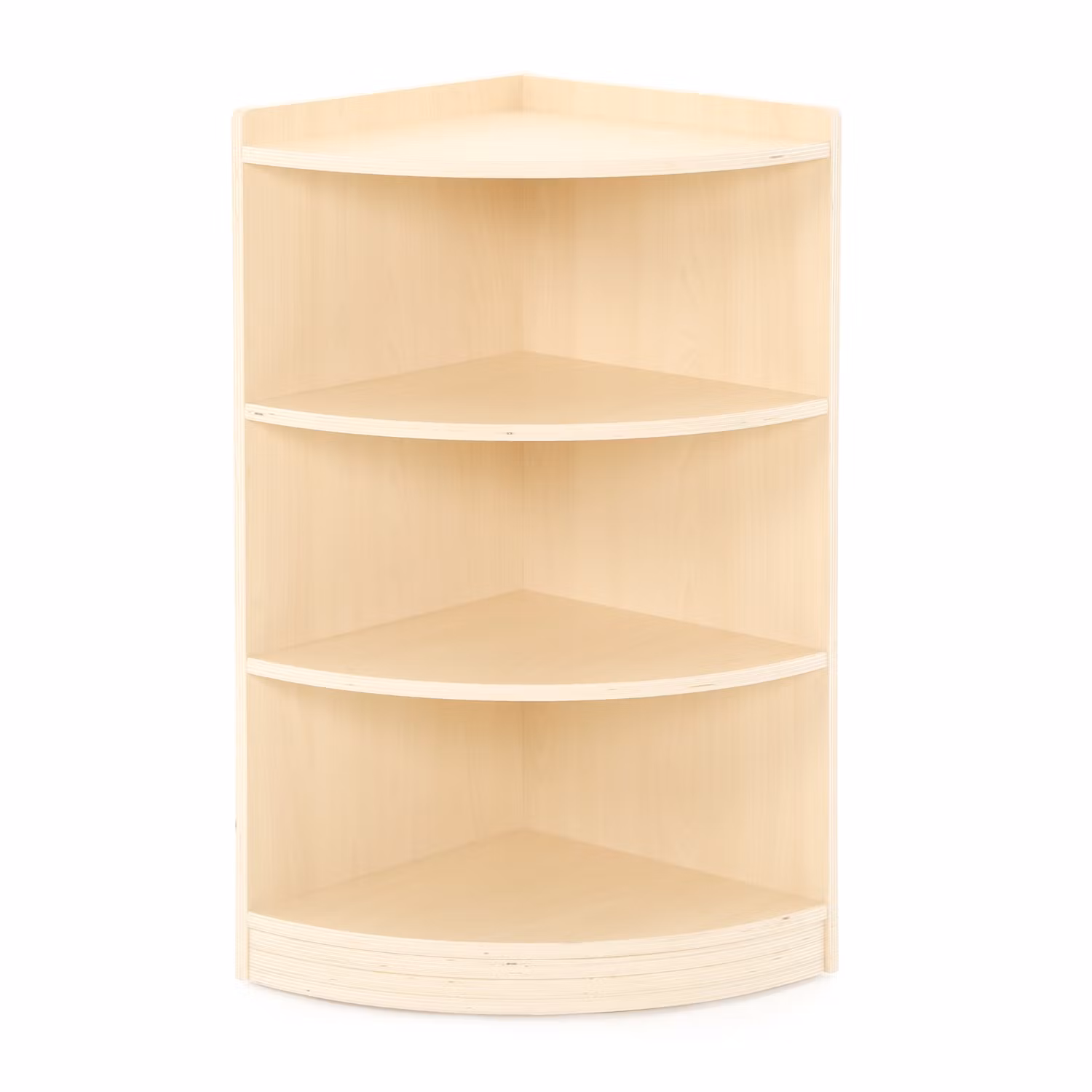 En hörnhylla med fyra hyllplan (tre fack) i möbelserien Owlaf.