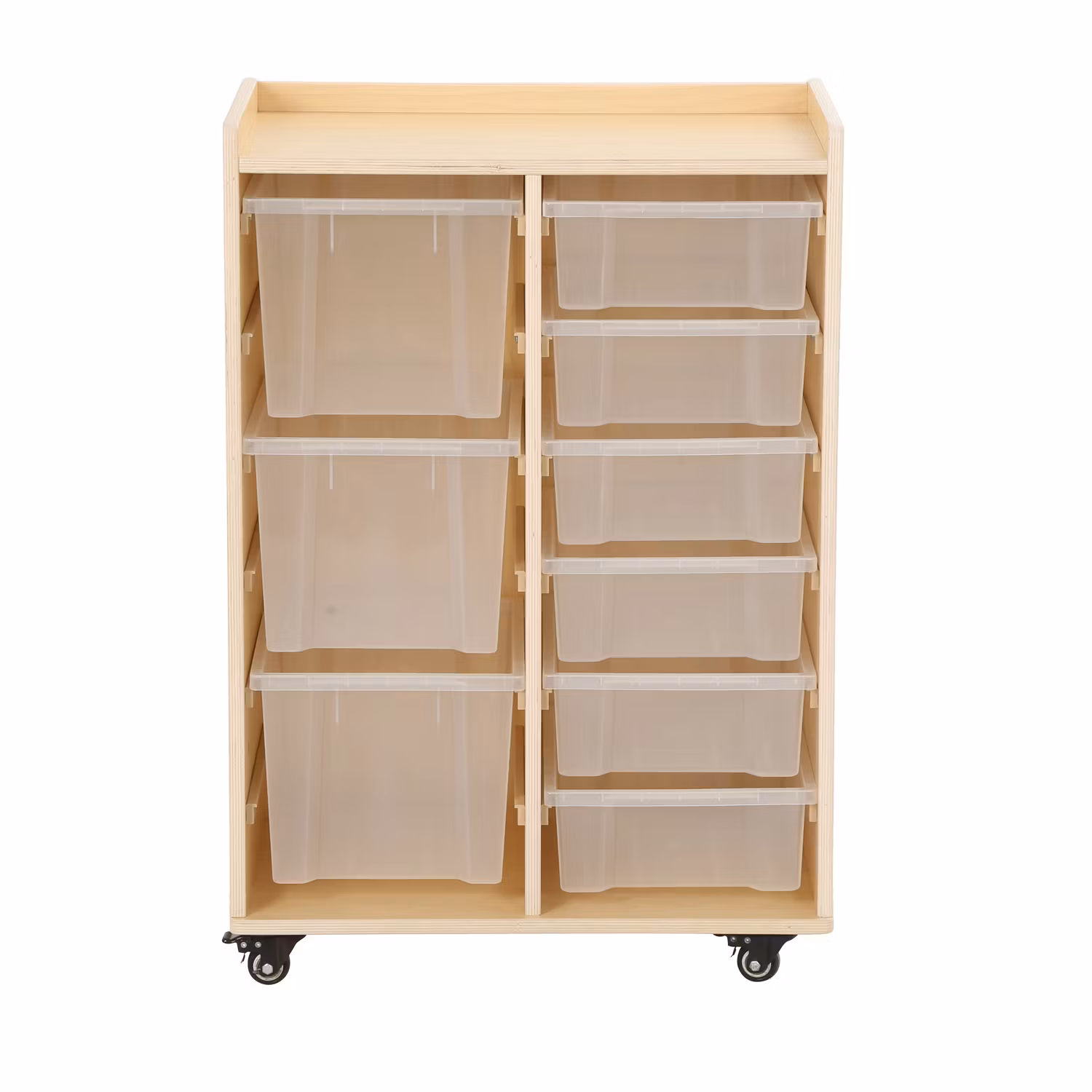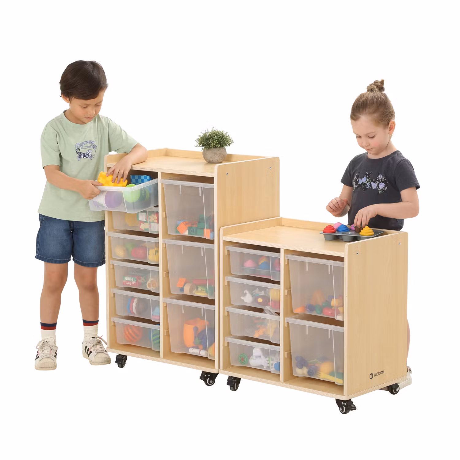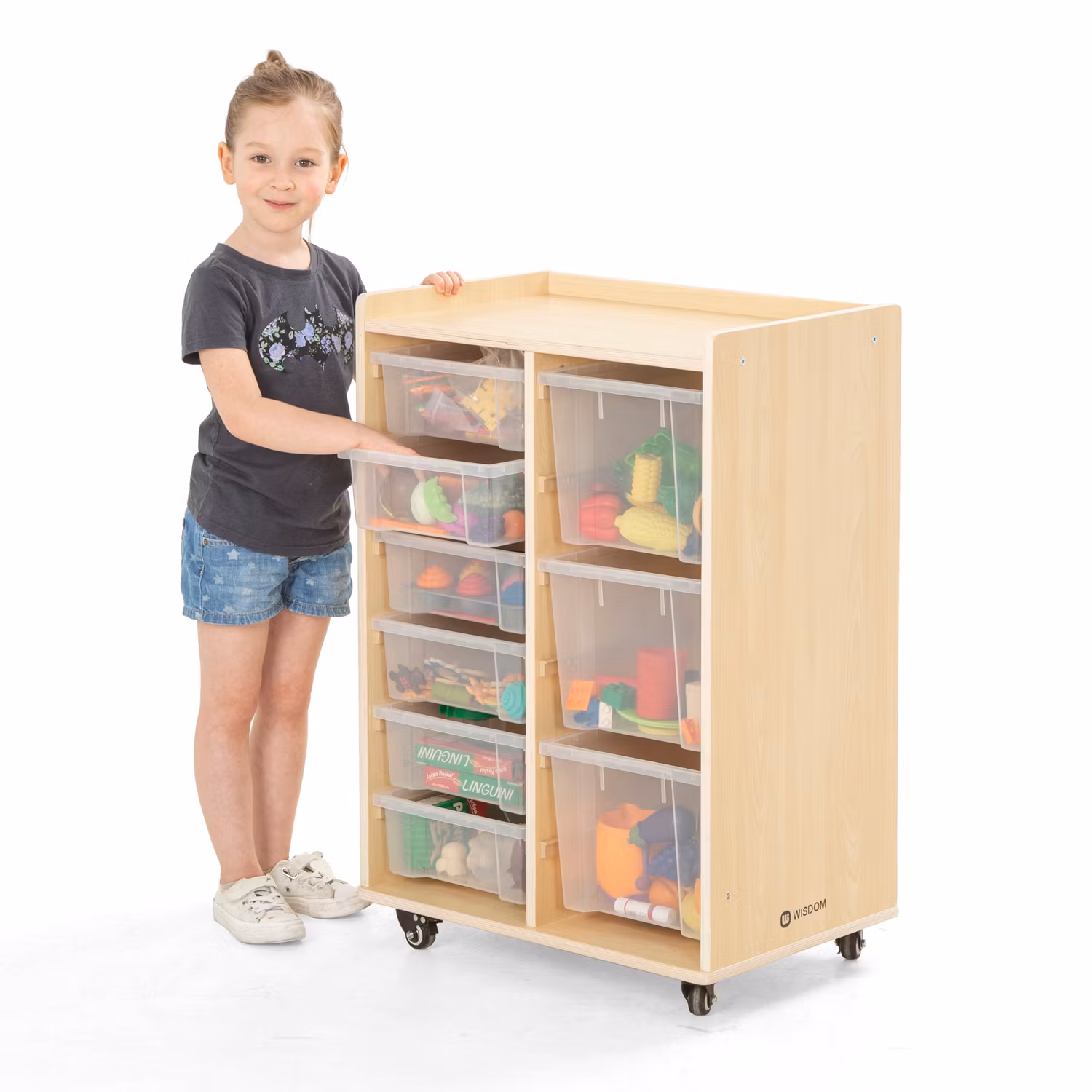 Denna mobila hylla passar perfekt på förskolan och lekrummet till förvaring av leksaker och pyssel.